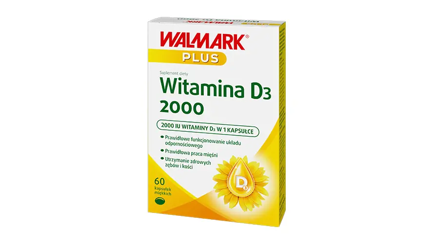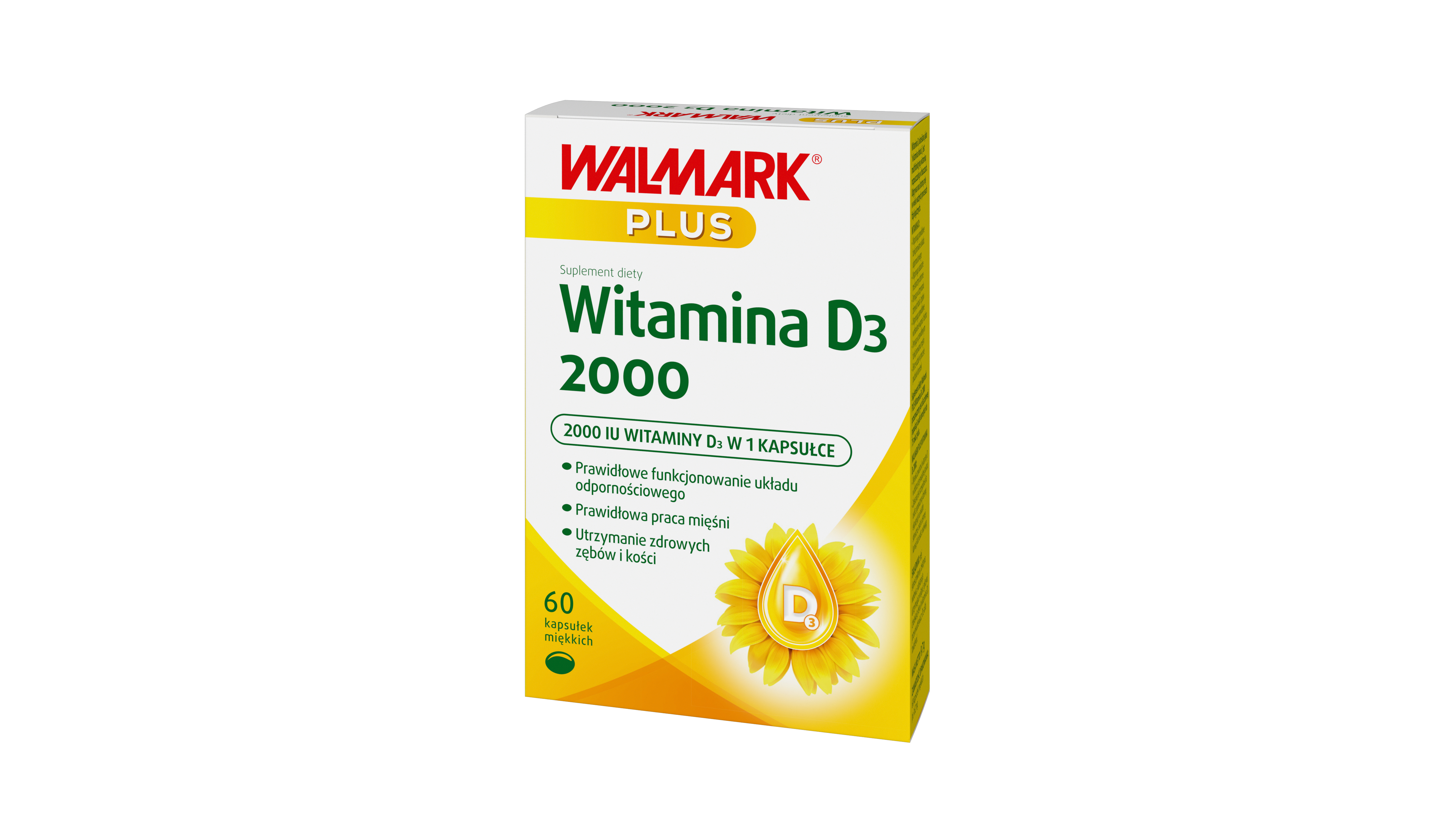 Suplementy diety Walmark PLUS Witamina D3 2000 zawiera najwyższej jakości witaminę D3, która wspomaga: