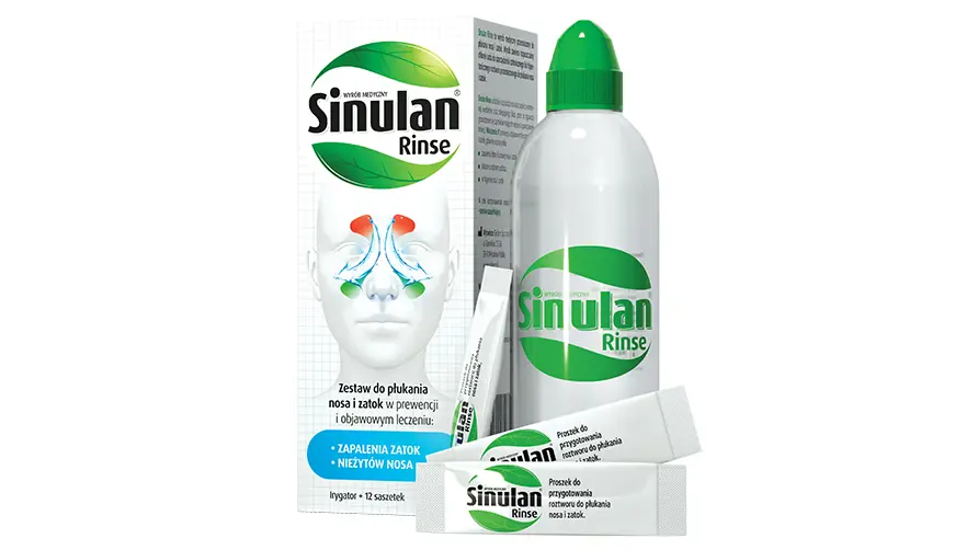Sinulan Rinse to wyrób medyczny przeznaczony do płukania nosa i zatok. Wyrób zawiera rozpuszczalny chlorek sodu do sporządzenia izotonicznego lub hipertonicznego roztworu przeznaczonego do płukania nosa i zatok. Sinulan Rinse udrażnia i oczyszcza nos oraz zatoki z nadmiernej wydzieliny oraz zalegającego śluzu, przez co ogranicza gromadzenie się czynników mających wpływ na powstawanie infekcji.