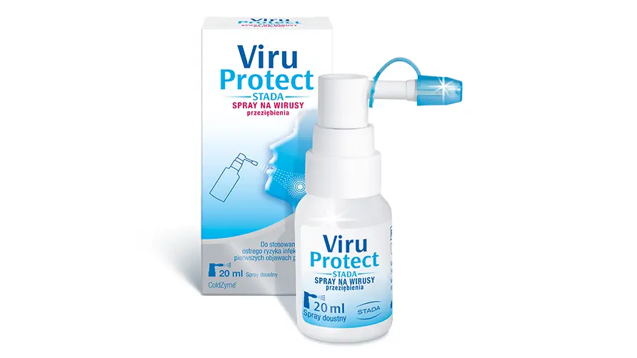 ViruProtect STADA to spray do gardła, zalecany przy ostrym ryzyku infekcji i przy pierwszych objawach przeziębienia. Zawiera naturalne składniki, takie jak glicerol i trypsynę, które w połączeniu tworzą barierę o potrójnym działaniu.²