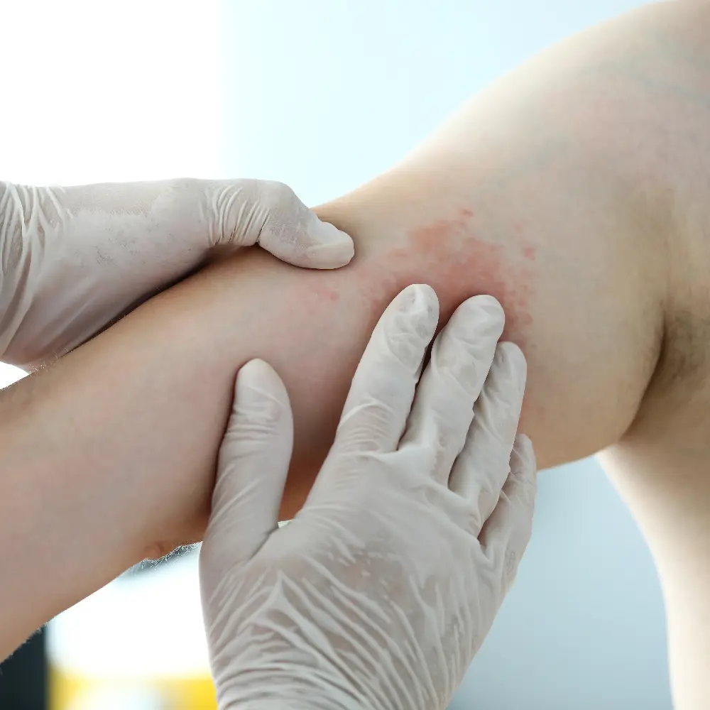 - Plaques rouges ou roses sur la peau (principalement sur les bras, les jambes, le visage et le haut du corps)