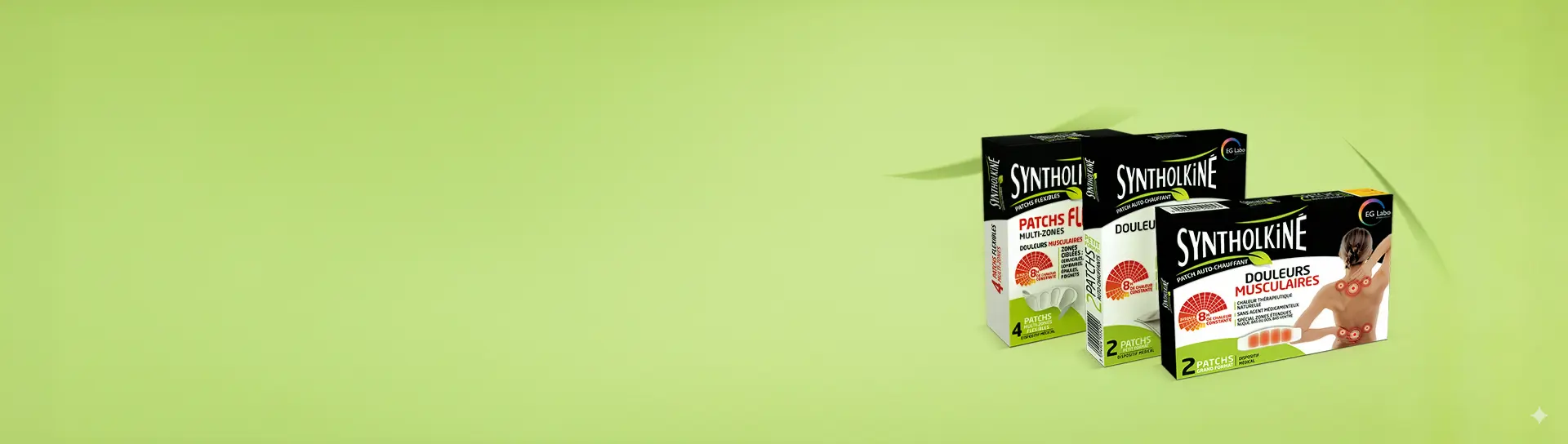 SyntholKiné patchs auto-chauffants et patchs flexibles sont destinés à soulager les douleurs musculaires. Contient des agents calorifiques qui produisent de la chaleur au contact de l’air. Jusqu’à 8h de chaleur constante. Ces dispositifs médicaux sont des produits de santé réglementés qui portent, au titre de cette réglementation, le marquage CE. Dispositifs médicaux de classe IIa (grand format : CE 0051 / petit format et patch flexible: CE 0476).