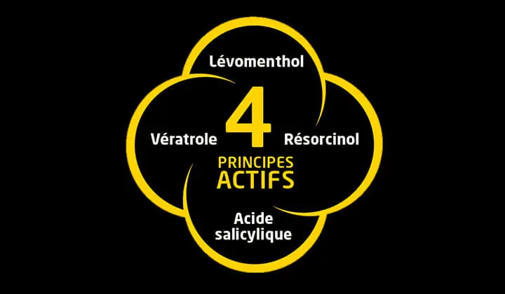 Synthol®, solution pour application cutanée contient 4 principes actifs pour vous aider à soulager vos petits maux :