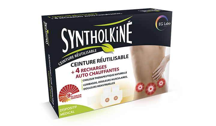 Avec ses recharges auto-chauffantes, la ceinture réutilisable SyntholKiné vous apporte jusqu'à 8 heures de chaleur constante.