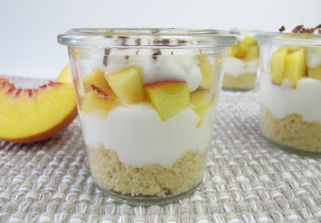 Verser le reste des pêches et des dattes et la vanille dans un mixeur, réduire en purée jusqu’à obtenir une sauce crémeuse. Ajouter la sauce aux pêches et aux myrtilles et mélanger.