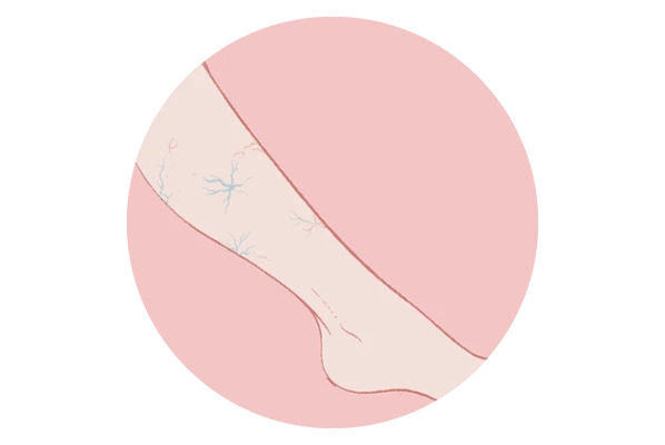 Présence de vaisseaux sanguins visibles ou de varicosités en toile d’araignée