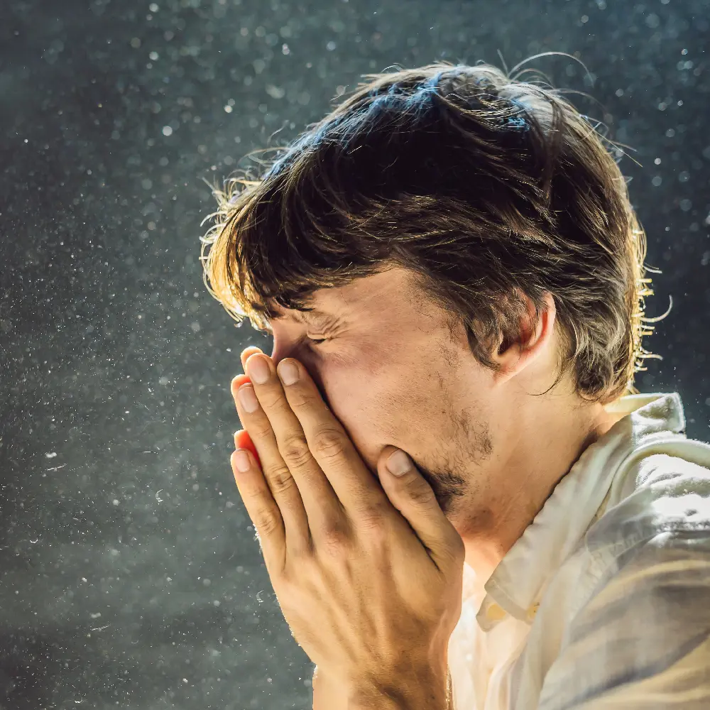 De symptomen van een allergische rhinitis lijken vaak op die van een verkoudheid. Het voornaamste verschil is dat allergische rhinitis niet wordt veroorzaakt door een virus of bacterie, maar door een allergeen. Je immuunsysteem reageert ongecontroleerd en overmatig op een onschuldige lichaamsvreemde stof - zoals huisstofmijt of pollen - waarop het normaal gesproken niet hoeft te reageren.
