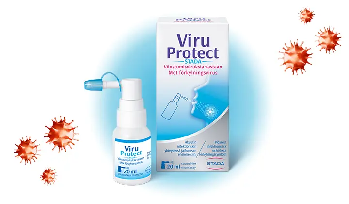 Suusuihke vilustumista vastaan. ViruProtect muodostaa suun ja nielun limakalvoille flunssaviruksilta suojaavan kalvon. Suojakalvo sulkee flunssavirukset sisäänsä, deaktivoi niitä ja estää niiden leviämisen2.