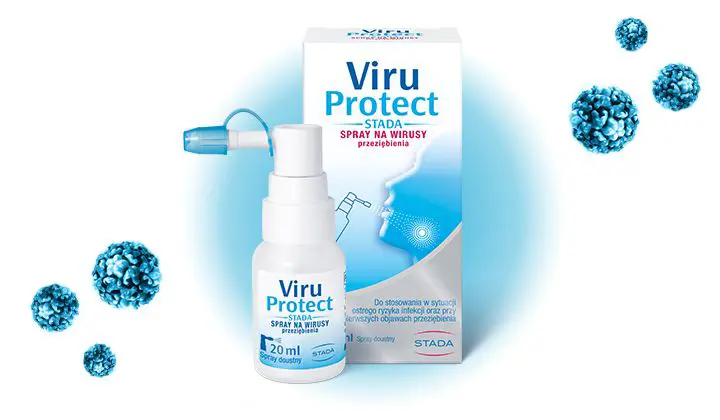 ViruProtect STADA to spray do gardła, zawierający naturalne składniki, takie jak glicerol i trypsynę, które