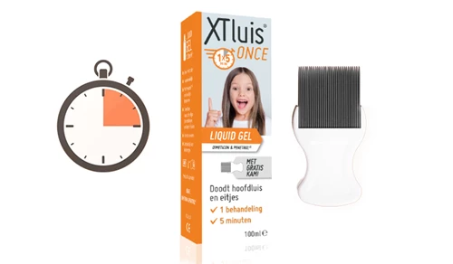 XT luis Once liquid gel is een anti hoofdluis middel met Dimeticon. Dimeticon is de werkzame stof. Dit is een silcone die de luis omsluit, waardoor hij zijn vocht niet meer kwijt kan en stikt.